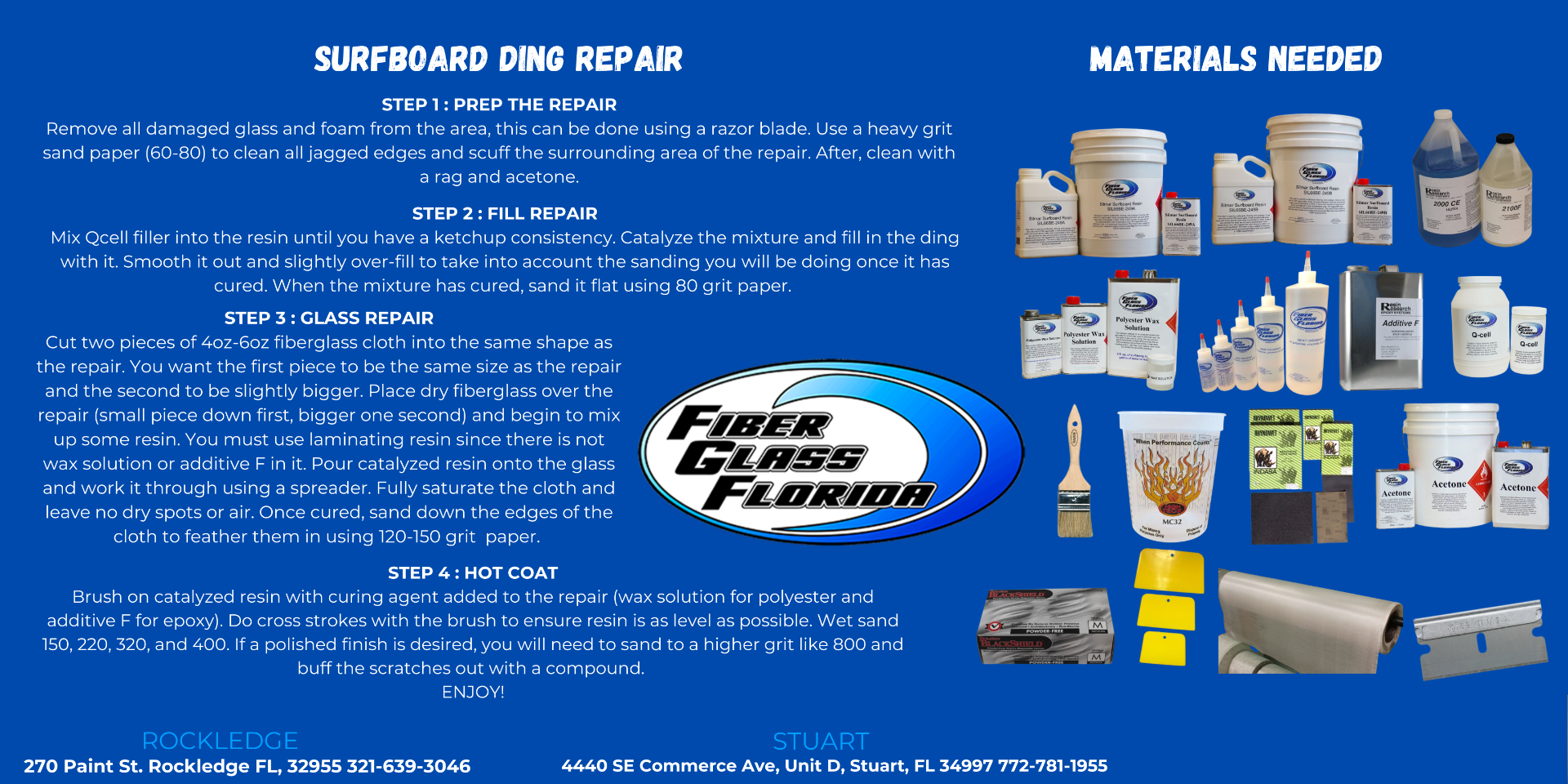 Resin Research 2000CE is the top choice for surfboard building and repair. It’s a 2:1 mix epoxy system designed for clarity, strength, and UV resistance—ideal for both lamination and hot coats. Fiberglass Florida is your #1 source for Resin Research epoxy and surfboard building supplies.
